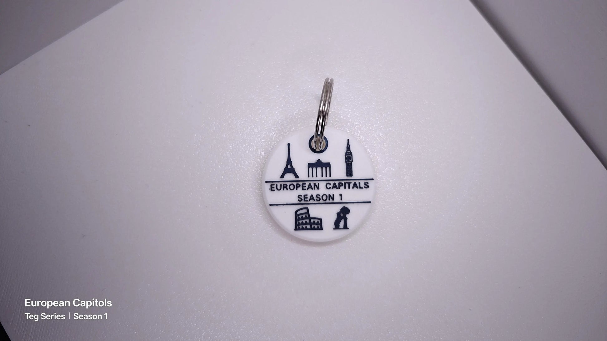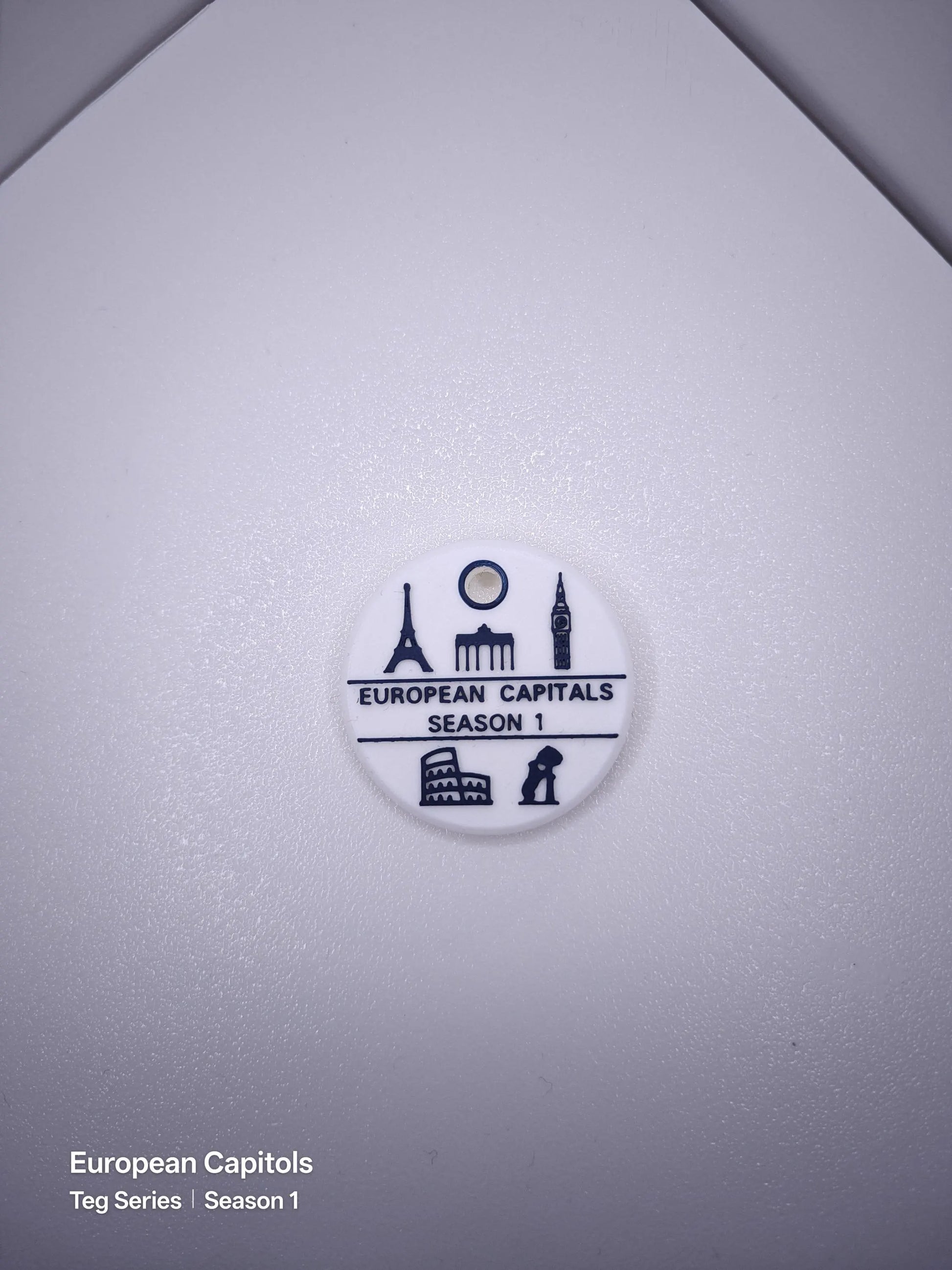 Meine TEG-Anhänger (kurz TEGs) sind spezielle, individuelle 3D-gedruckte Anhänger mit integriertem NFC-Tag. Dieser Anhänger ist Teil der ersten Sammelserie, die fünf der bedeutendsten europäischen Hauptstädte mit ikonischen Bauwerken zeigt: BERLIN (mit Brandenburger Tor), PARIS (mit Eiffelturm), ROM (mit Kolosseum), LONDON (mit Big Ben) und MADRID (mit Bär und Baum). Dieser TEG ist das Serienmotiv ist der Serie und umfasst die fünf Symbole der einzelnen Städte-TEGs.